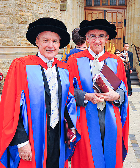 Professors Peter Colman and Brian Matthews rejoined their alma mater on 29 September to receive honorary degrees from the University. Both are Science PhD graduates from the University, and both have gone on to excel in their chosen fields.
