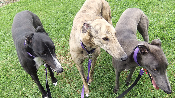 The first three greyhounds adopted by the Companion Animal Health Centre (from left): Harry, Barrett and Lilly