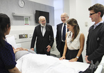 Medicine and nursing students from the University of Adelaide will gain vital clinical skills thanks to a new, state-of-the-art teaching facility named after one of the University's most illustrious medical graduates, Emeritus Professor J. Robin Warren AC. Professor Warren, who won the Nobel Prize for Medicine in 2005, last month opened the new Robin Warren Clinical Skills Laboratory at the University's Medical School with Health Minister the Hon. John Hill. The Robin Warren Lab is a $2.5 million facility where students can practise and learn the fundamentals of medical consulting and nursing. The lab features single-bed "mini wards" that are fully equipped as if they were real hospital wards, including actual hospital beds, bathrooms and showers. Change rooms, tutorial rooms, and a debriefing area are also included. First and second-year medical students will use the lab to learn how to talk to patients, take their histories, and make diagnoses. This interaction will be with "surrogate patients" - trained actors posing as patients. Nursing students can use the lab to familiarise themselves with a typical hospital environment and practise nursing care, such as learning how to assist patients in shower and bathroom areas. The new lab will also be used for clinical exams for students in all years of study. "The Robin Warren Lab represents a real-world environment within a classroom - perfect for students in the early years of their study," said the Vice-Chancellor and President Professor James McWha AO. "This large, dedicated and flexible teaching space will lead to outstanding teaching and learning outcomes for our growing number of students in nursing and medicine. The facility will be critical in developing the all-important clinical skills needed by students, and this will have a direct benefit on the future health outcomes of South Australians. "The University of Adelaide is extremely proud of Dr Robin Warren's achievements. We hope that by naming this new facility in his honour, it will serve as an inspiration to new generations of students." Dr J. (John) Robin Warren graduated in medicine from the University of Adelaide in 1961. He received the 2005 Nobel Prize for Medicine with colleague Professor Barry Marshall. Their discovery of the bacterium Helicobacter pylori and its role in gastritis and peptic ulcer disease revolutionised the treatment of this major medical problem. Dr Warren is Emeritus Professor at the University of Western Australia and the Royal Perth Hospital. In 2006, he was awarded an honorary doctorate from the University of Adelaide in recognition of his distinguished achievement as a scholar and his contribution to society in physiology and medicine. Story by David Ellis