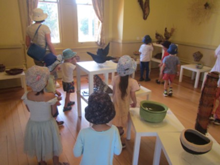 A Fringe event at Urrbrae House showcasing different items from Basketry SA woven using a variety of natural materials was the perfect event to take the preschool children to explore what can be made from natural materials with some creativity. The children were very interested in the birds and eggs that had been made and even noticed small details such as bees wax in one item and stones and feathers in other ones.
