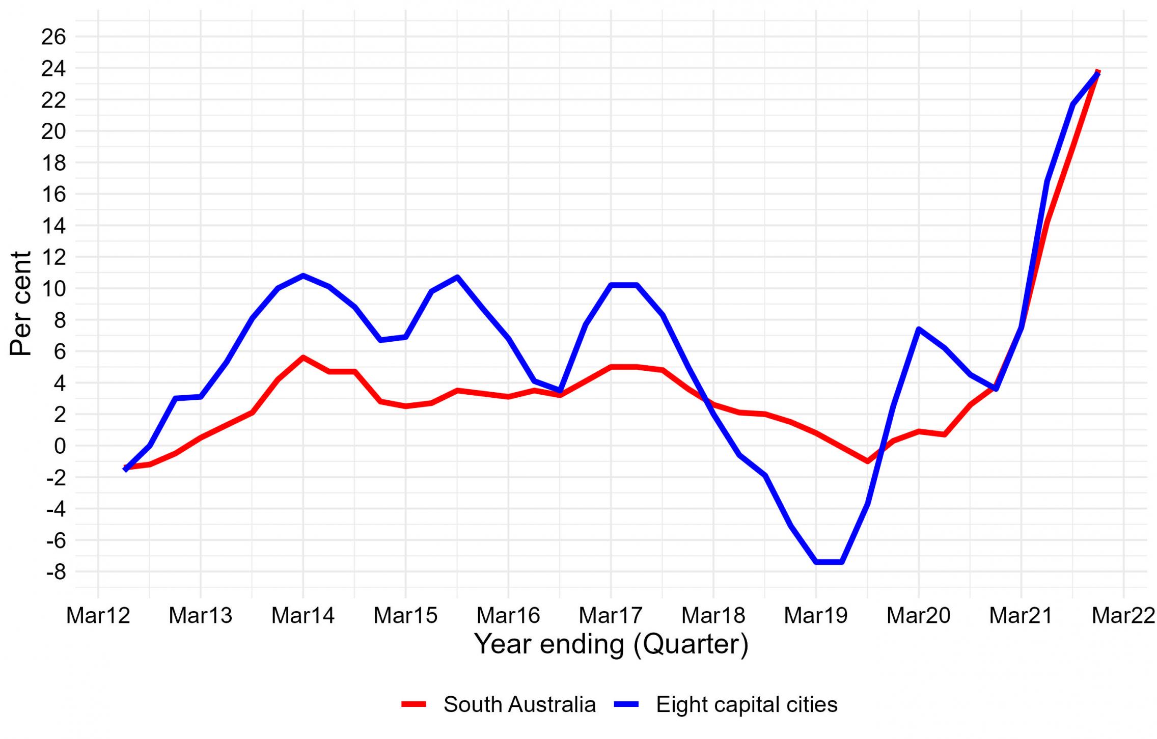 Sector 2017/18 2018/19 2019/20 2020/21 2021/22 2022/23 2023/24 Private South Australia 2.0 2.3 2.5 1.5 2.3 3.9 4.3 Australia 2.0 2.2 2.1 1.5 2.4 3.7 4.1 Public South Australia 2.2 2.1 1.7 1.8 1.6 2.6 2.5 Australia 2.4 2.5 2.3 1.5 2.1 2.7 3.8 Private and Public South Australia 2.1 2.2 2.4 1.6 2.1 3.5 4.0 Australia 2.0 2.3 2.1 1.5 2.4 3.5 4.1