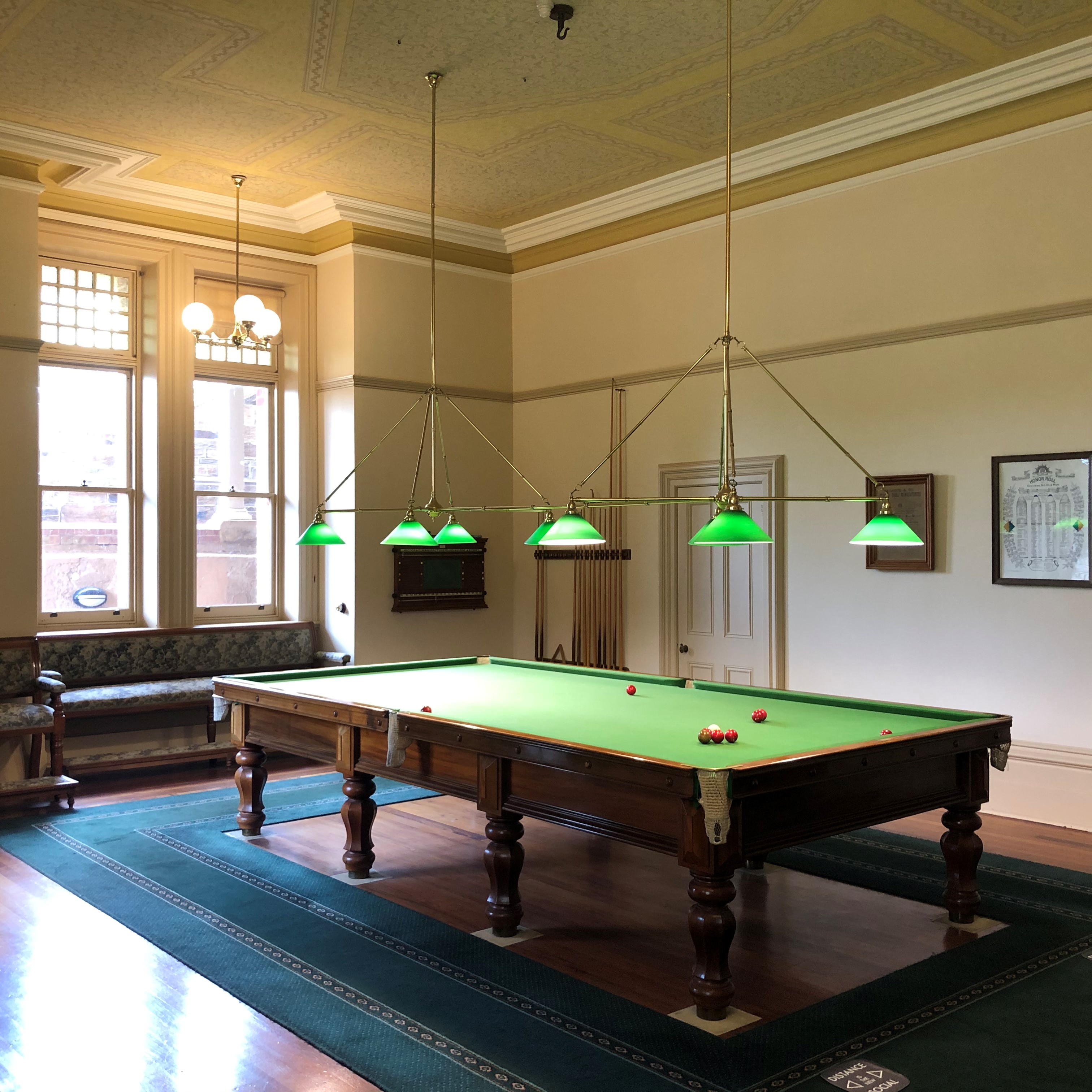 The main focus of the Billiard Room is the magnificent Alcock & Co "Squatter's Favourite" billiard table. While the room was predominantly a male domain, during a visit in August 1895 artist Arthur Streeton wrote that he played billiards with Peter Waite and his daughters while he and Waite were "gushing about art the whole time".